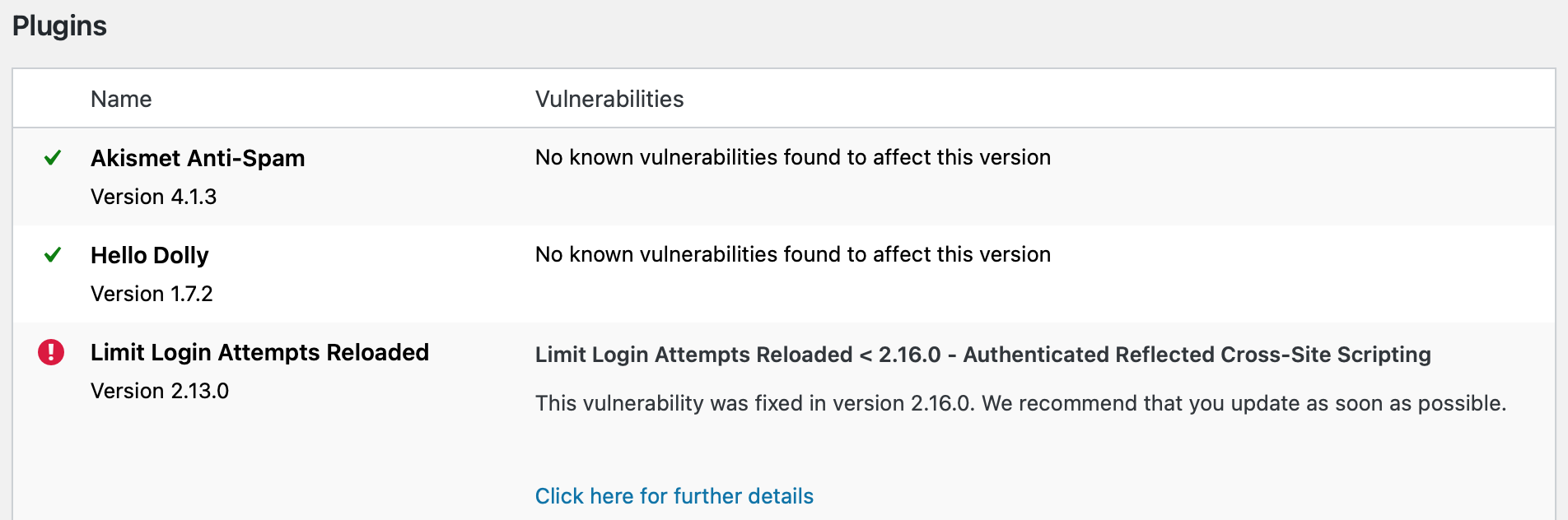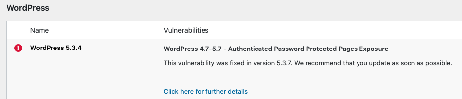 - Sugestię tego jak naprawić dany problem, np. aktualizacja WordPress’a.